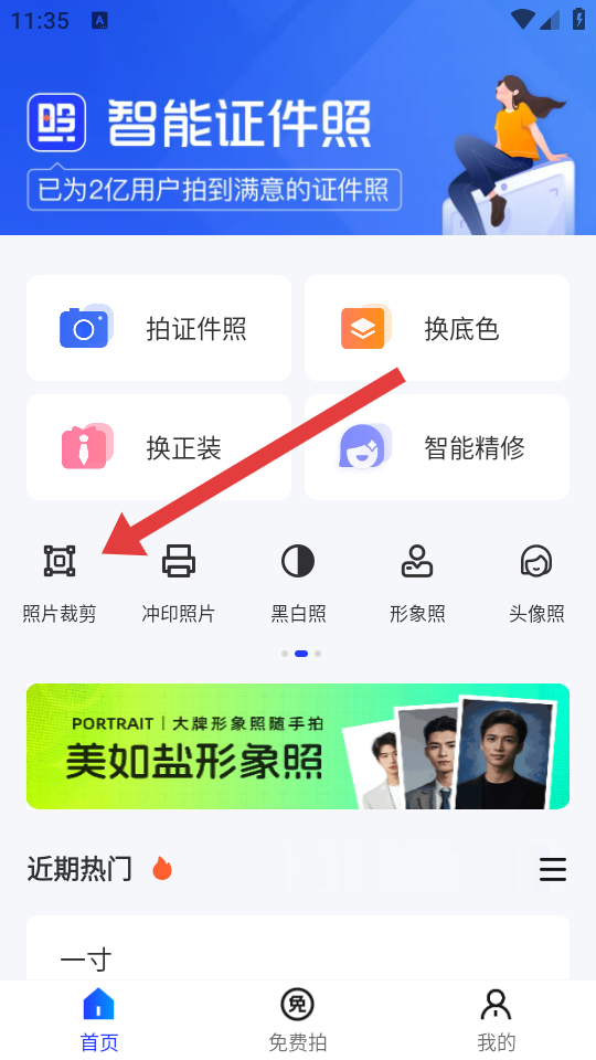 1、在智能证件照首页,点击功能栏中的照片裁剪选项,进入图片选择界面。
