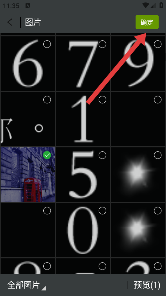 2、在图片选择界面,勾选要裁剪的图片后,点击右上角确定,进入裁剪页面。