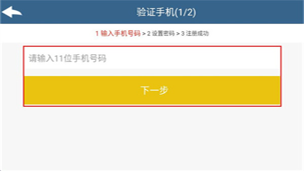 3、在验证手机界面输入11位手机号码,点击下一步按钮。