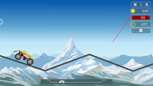 2、注意屏幕右上方的红色能量条,行驶中避免过度颠簸损耗能量。
