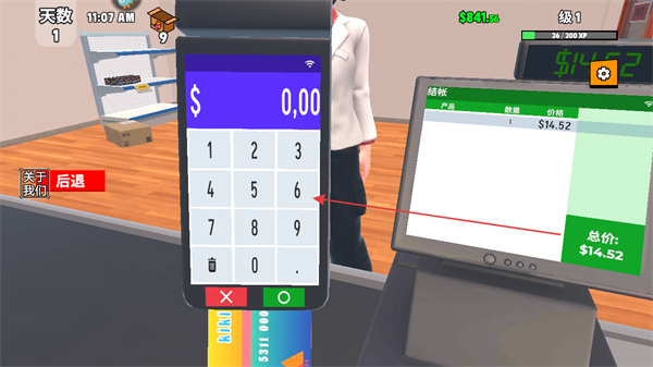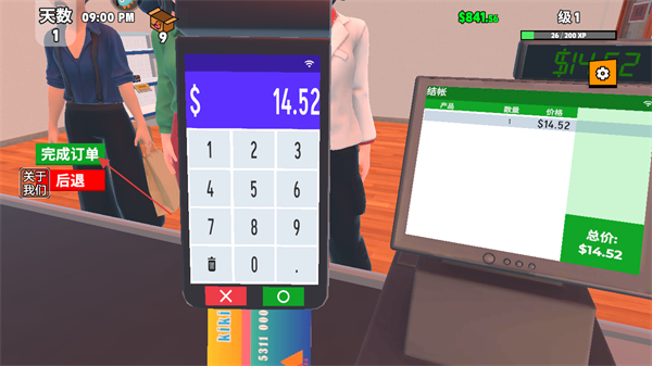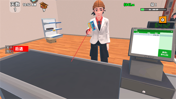 1、进入游戏留意屏幕上方天数,时间,金钱数量及等级信息点击商品开始收银。