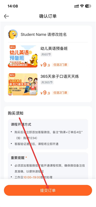 4、在确认订单页面,点击提交订单即可成功购买课程。