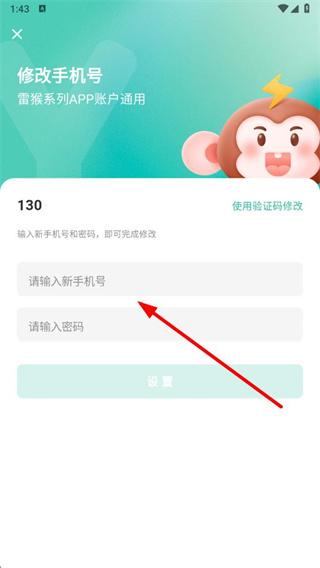 4、在修改手机号页面,输入新手机号和密码,点击设置,即可完成手机号的修改操作。
