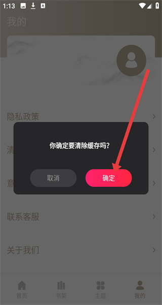 3、在个人中心界面,点击清理缓存选项,弹出确认清除缓存的提示框。