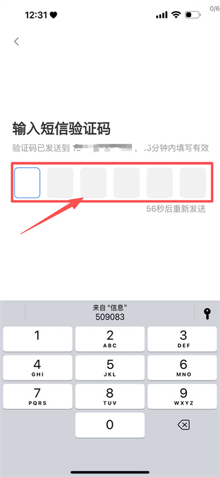 4、在验证码输入页面,输入收到的短信验证码,完成注册操作。