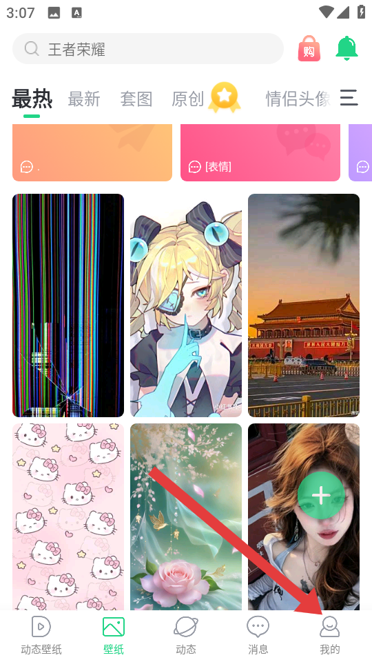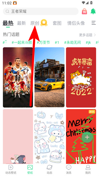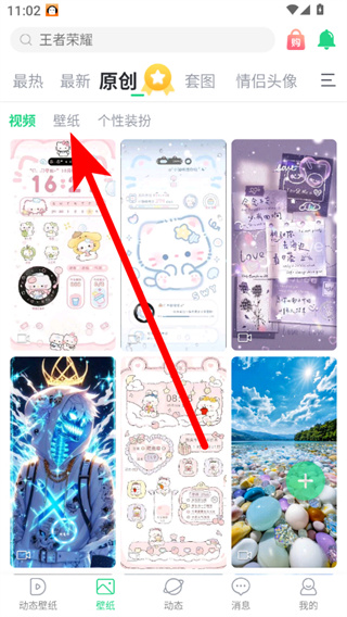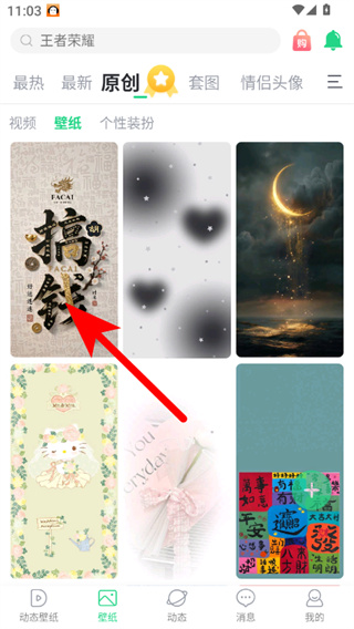 2、在原创壁纸分类页面,点击壁纸选项,进入壁纸列表页面。