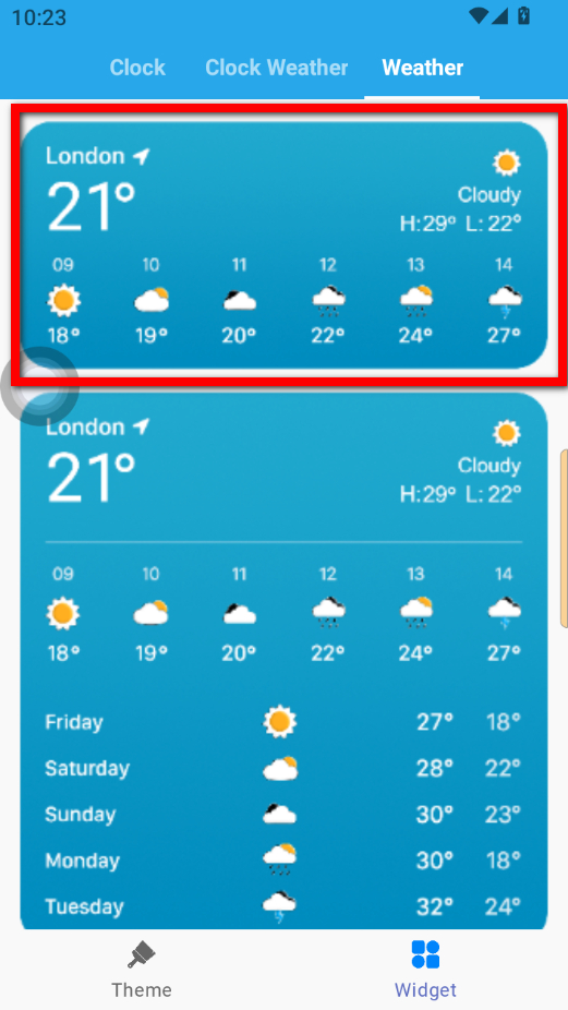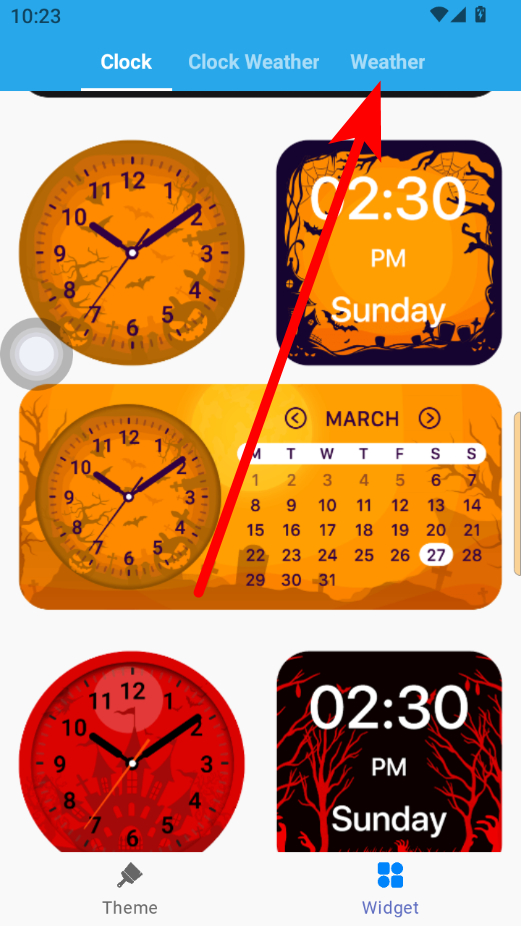 2、在小组件选择界面,点击顶部Weather选项卡,切换到天气小组件类别。