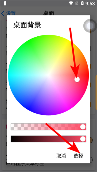 4、在桌面背景选择界面,选择喜欢的颜色后点击选择,即可完成桌面背景更换。
