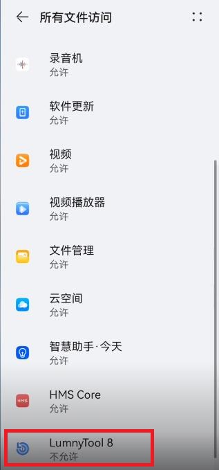 4、随后在授权列表中找到【LumnyTool】去进行授权;