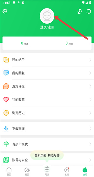 2、在进入到个人空间页面后,可以点击上方头像区域,进行登录操作。