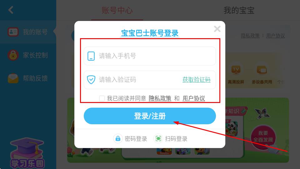 4、输入手机号、验证码,勾选同意隐私政策和用户协议,点击登录/注册。