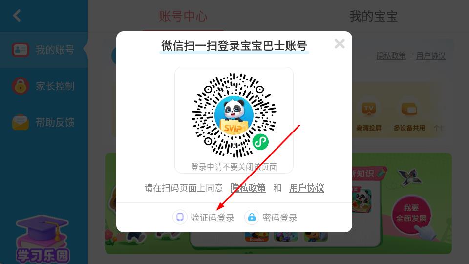 3、在弹出的登录方式选择窗口中,点击下方的验证码登录选项。