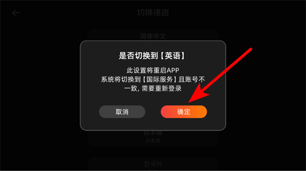 3、在弹出的确认框中,点击确定按钮,即可完成语言切换操作。