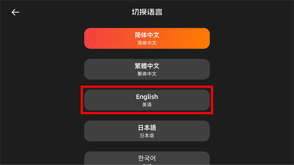 1、在音乐CP登录页面,点击右上角切换语言选项,进入语言选择界面。