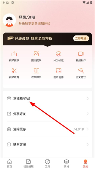 2、在个人页面,点击草稿箱作品,进入草稿箱页面。
