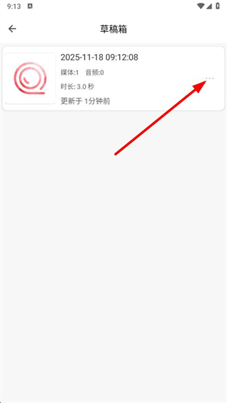 3、在草稿箱页面,点击目标草稿右侧的三个点图标,弹出操作菜单。