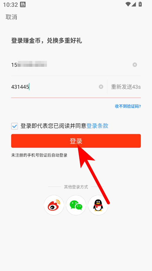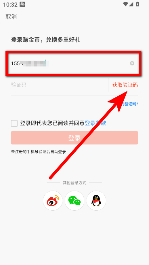 3、在登录方式选择页面,输入手机号后点击获取验证码,输入收到的验证码。
