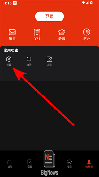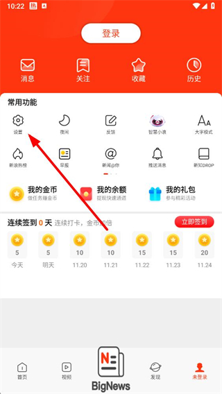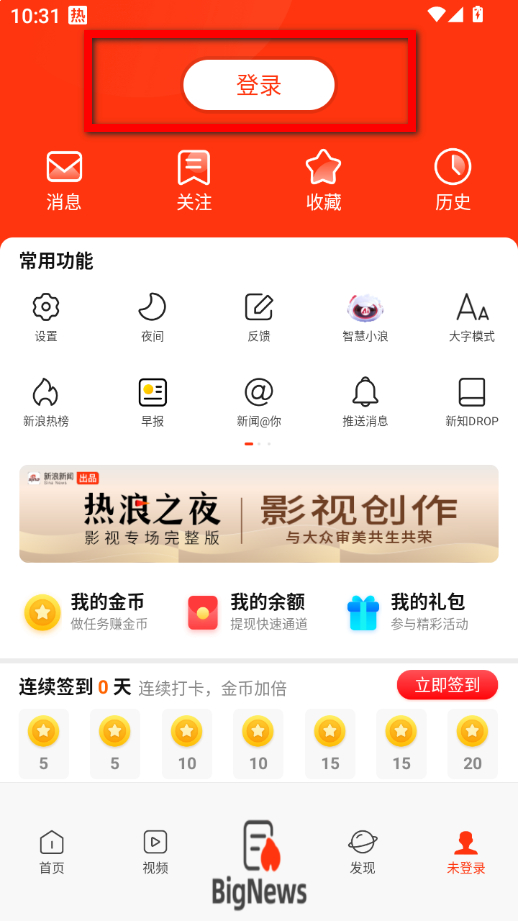 1、在新浪新闻首页,点击右下角未登录选项,进入个人功能页面。