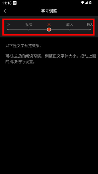 4、在字号调整页面,拖动滑块选择字号,即可完成字体大小设置。