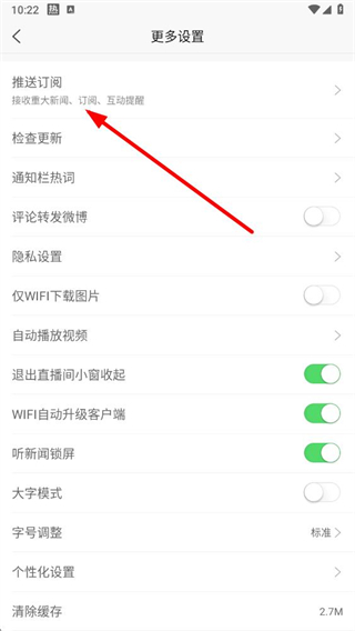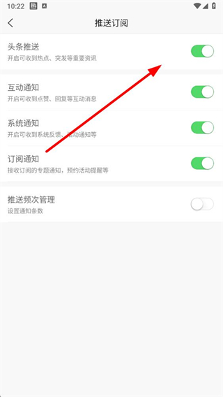 4、在推送订阅页面,找到头条推送选项,点击其右侧的开关按钮,即可关闭推送。