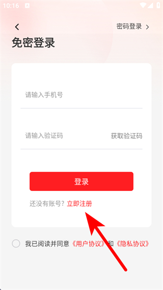 3、在登录选择页面,点击立即注册的按钮,进入注册的页面。