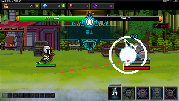 1、操控弓箭手在场景中攻击稻草人等目标,积累经验和资源。