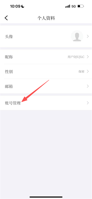 3、在个人资料页面,点击账号管理,进入账号管理页面。