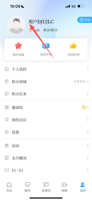 2、在我的页面,点击用户名区域,进入个人资料页面。