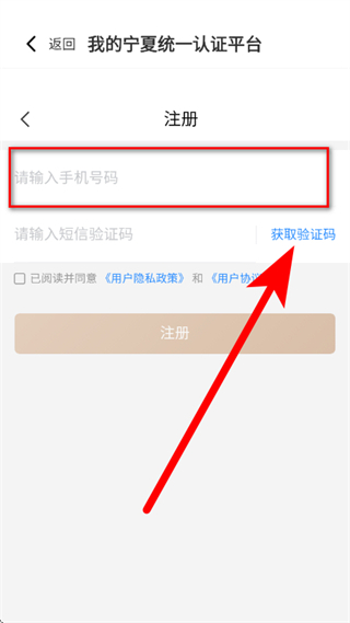 5、输入短信验证码,勾选已阅读并同意后,点击注册。