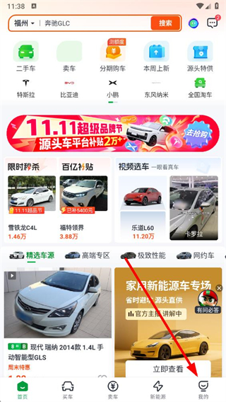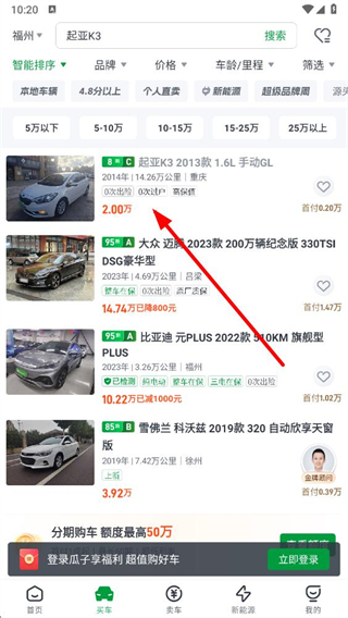 2、在买车页面,根据自己选择感兴趣的车辆。