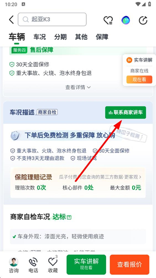 4、点击该按钮可与卖车商家取得联系,咨询车辆相关信息。