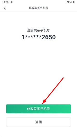 4、在修改联系手机号页面,点击修改联系手机号按钮,按照提示完成手机号修改操作。