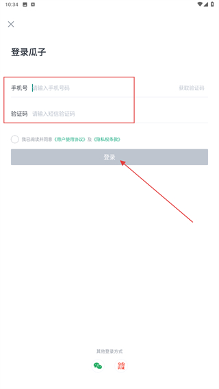 3、输入手机号码以及验证码后,点击登录即可完成。