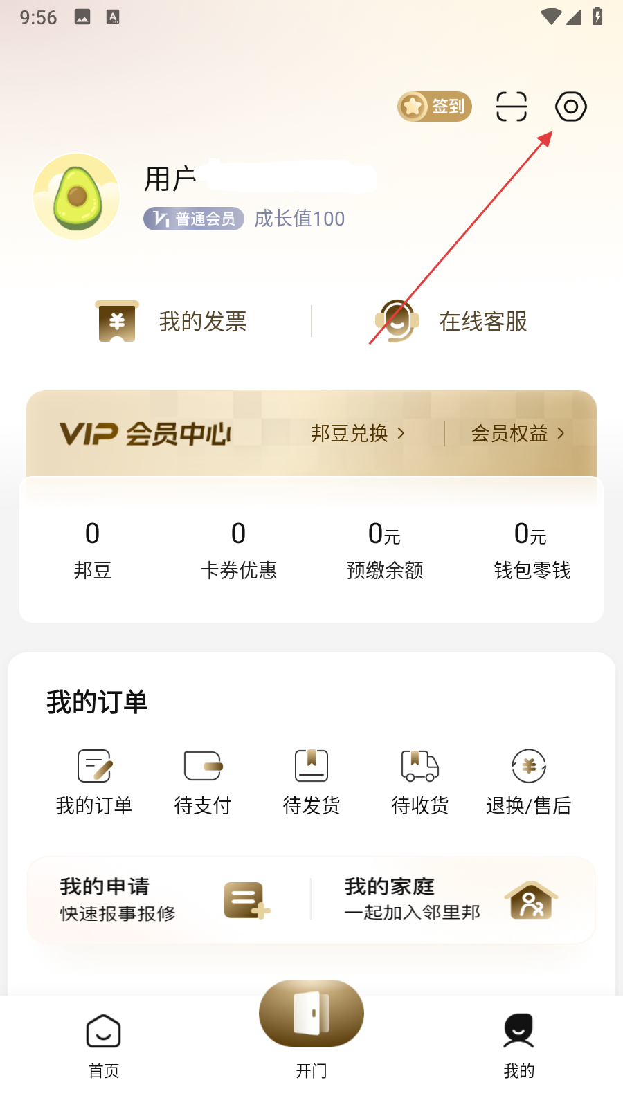 1、打开邻里邦APP,进入个人页面,点击页面右上角设置图标,进入设置界面。