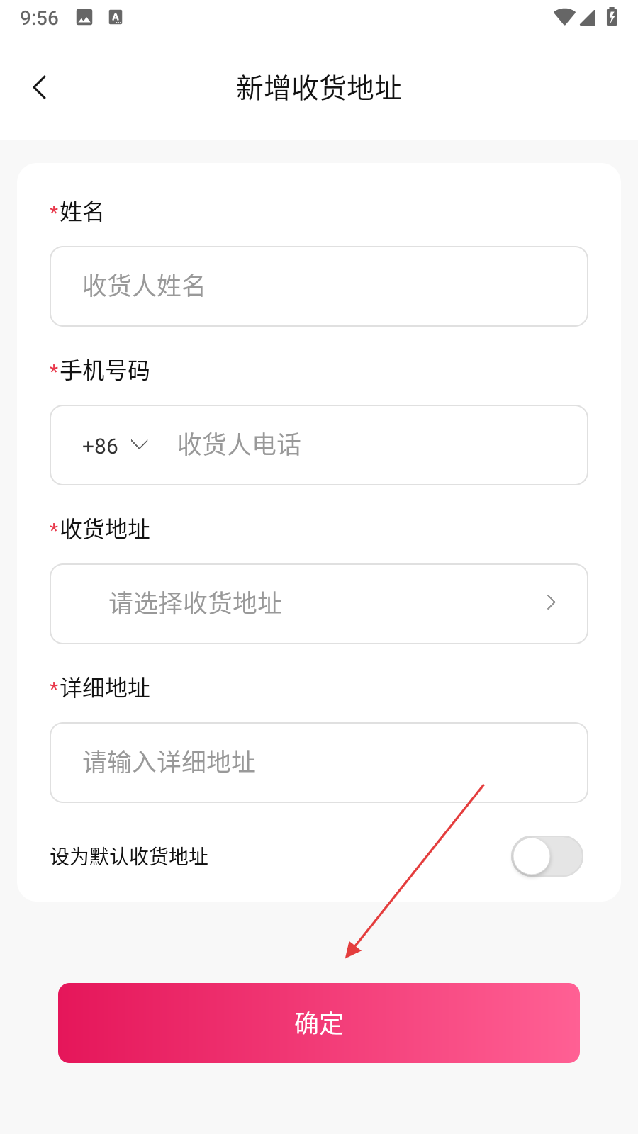 4、进入新增收货地址界面后,填写信息后点击确定即可。