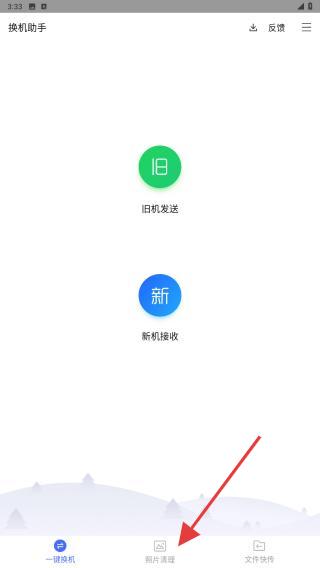 1、打开腾讯换机助手APP,在主界面底部点击照片清理的按钮。