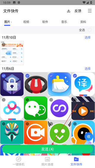 3、勾选好需要传输的文件后,点击底部的发送按钮。