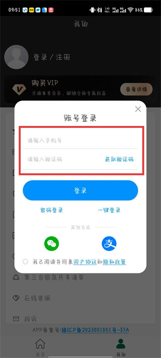 4、输入手机号码,点击获取验证码并输入。