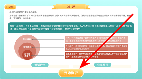 2、专注力评估功能,通过孩子的测评情况,能够更好的判断孩子的专注力。