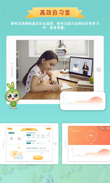 3、高效自习功能,通过科学化的作业流程,两个全方位的记录孩子的训练情况。