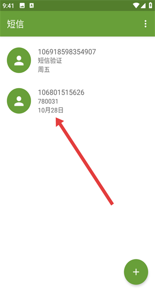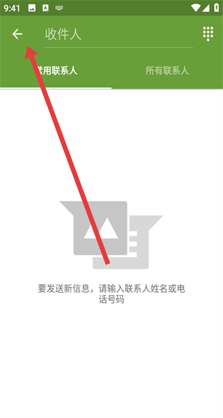 2、在短信界面,点击左上角的返回箭头,回到短信列表界面。