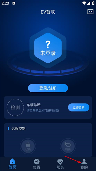 1、打开EV智联APP,点击右下角我的,进入个人页面。