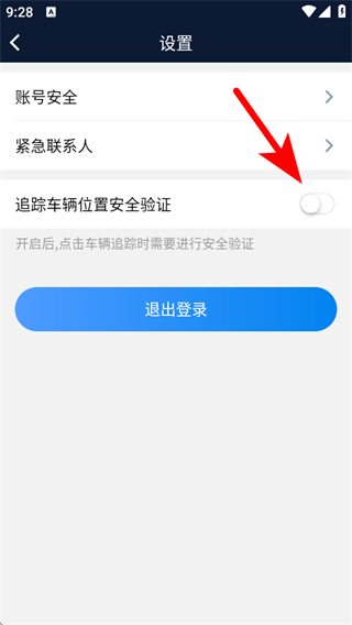 3、在设置界面中,找到追踪车辆位置安全验证开关,点击开启该功能。
