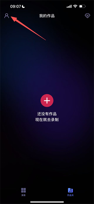 2、在我的作品页面,点击左上角头像图标,进入登录选择页面。