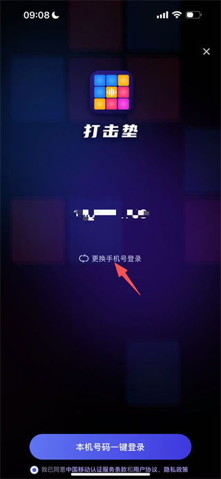 3、在登录选择页面,点击更换手机号码登录,进入手机号登录页面。