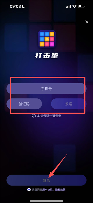 4、在手机号登录页面,点击登录选项,进入手机号验证页面。