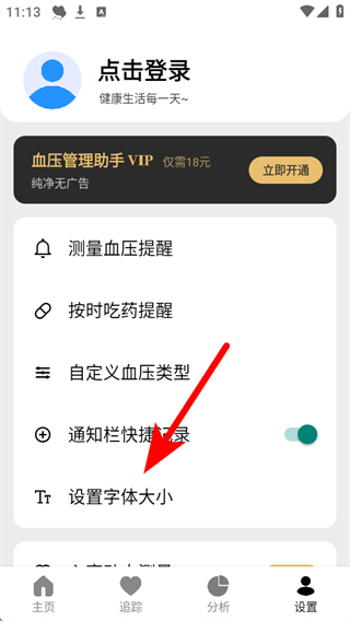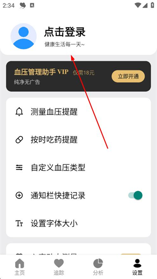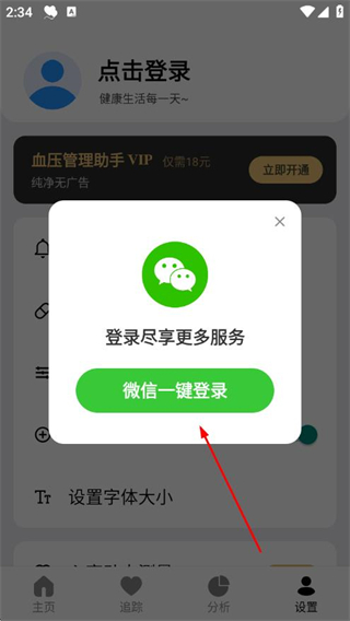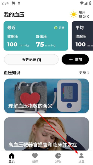1、打开血压管理助手APP,点击底部设置,进入设置页面。