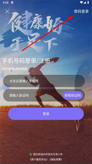 1、在天天来计步app启动时,点击同意隐私政策和用户服务协议。