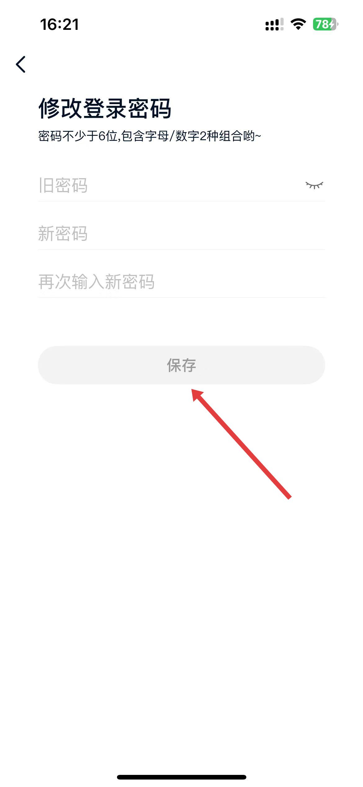 5、依次输入旧密码、新密码并再次输入新密码,最后点击保存,即可完成密码修改。