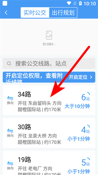 2、在实时公交页面,选择要查询的公交线路,如34路。